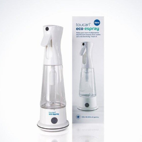 Toucan Eco eSpray is a product that provides an effective and natural disinfectant cleaner that kills 99.9% of germs, including coronavirus.